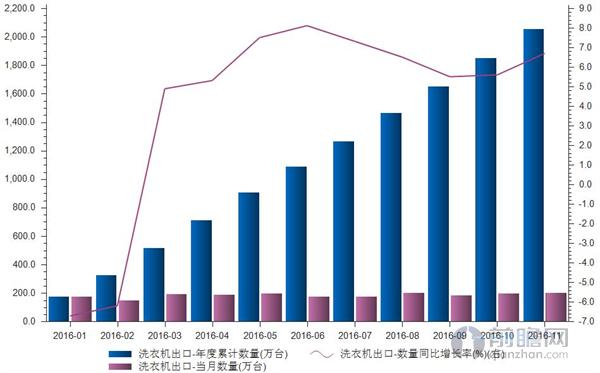 據(jù)前瞻數(shù)據(jù)庫數(shù)據(jù)顯示,2016年1-11月我國洗滌機械出口累計2055萬臺,累計同比增長6.7%。2015年12月中旬,美國家電制造商惠而浦舉起反傾銷大棒,該公司向美國商務(wù)部和國際貿(mào)易委員會提出申請,請求對韓系廠商三星、LG的大容量洗滌機械產(chǎn)品進行反傾銷調(diào)查。值得注意的是,這些洗滌機械的原產(chǎn)地均是中國。隨后,美國商務(wù)部與國際貿(mào)易委員會接受惠而浦的申請,對中國生產(chǎn)的洗滌機械開展了反傾銷調(diào)查。